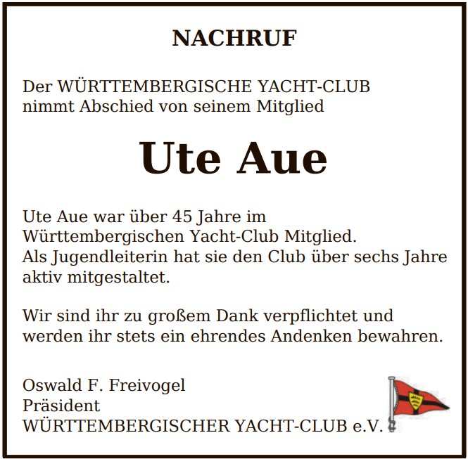 Nachruf Ute Aue