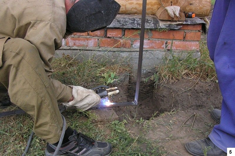 Шаг 4: обвязка вкопанных уголков путем сваривания