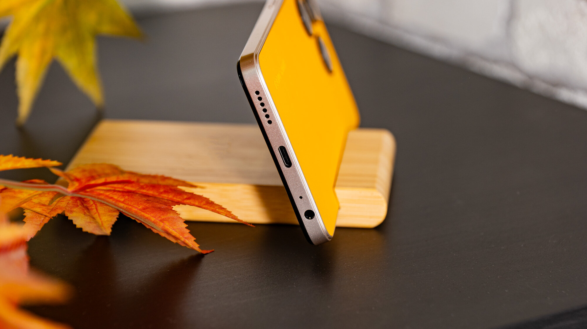 Технически младшая модель повторяет все решения на корпусе от старшей Pro: клавиши регулировки громкости и включения на правой грани, лоток для карты памяти и двух сим-карт на левой, и Type-C с аудиоразъёмом 3,5 мм на нижней грани. Грани, кстати, не в цвет корпуса, а серебряные с теплым оттенком, так бы я охарактеризовал их цвет. В итоге имеем темный (когда выключен) экран, оранжевый «задник» и серебряные грани — фантастическое сочетание, мне очень нравится цветовая гамма.