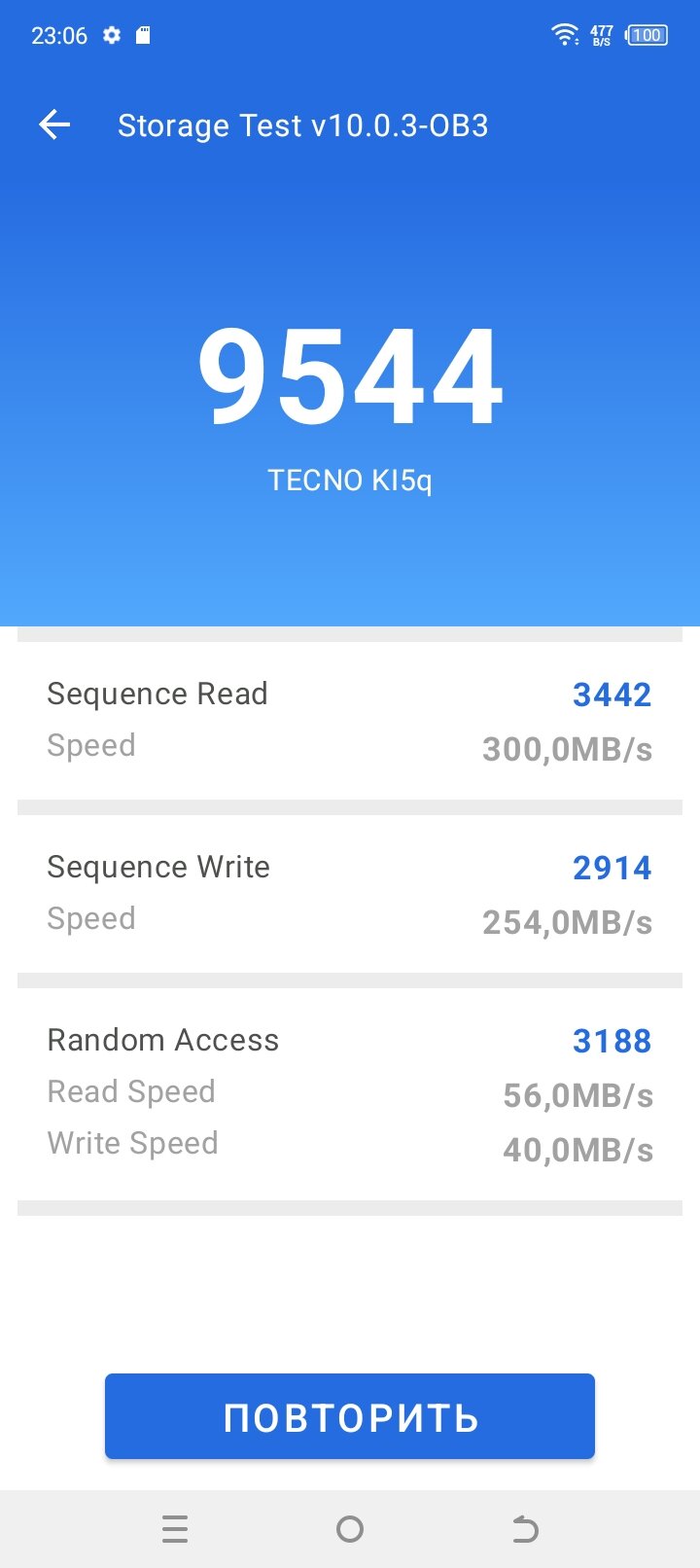 Аккумуляторная батарея в этом смартфоне точно такая же, как в Tecno SPARK 10 Pro, — 5000 мА⋅ч. Прибавим к этому слегка уменьшившийся экран и сниженную производительность процессора, и можно смело прибавлять около 10% к времени работы «большого брата», который показал 15 часов и 25 минут в нашем тесте на автономность. Производитель также положил в комплект зарядное устройство мощностью 18 Вт, который заряжает его от 0% до 100% за два часа.