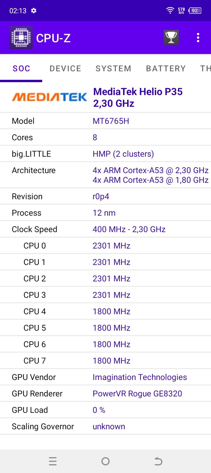 - CPU: Cortex-A53 (4× 2,3 ГГц) + Cortex-A53 (4× 1,8 ГГц).
