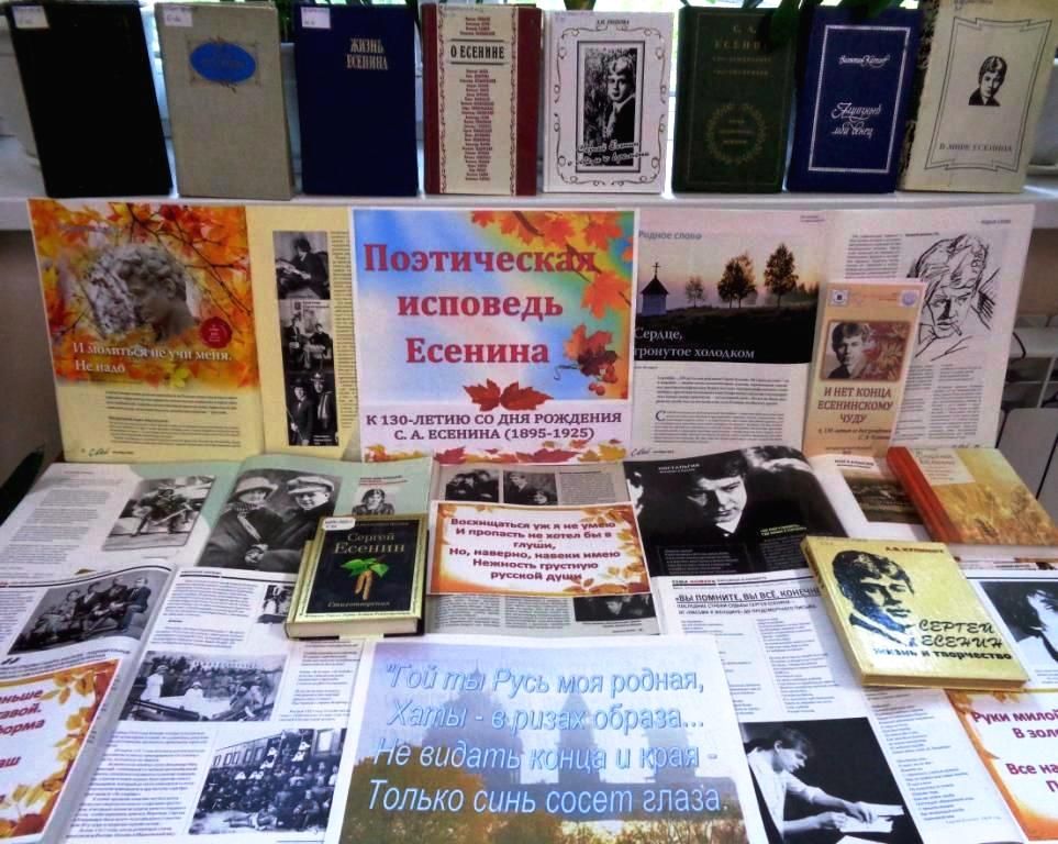 Информационным сопровождением вечера стала книжная выставка «Поэтическая исповедь Есенина», включившая издания по теме мероприятия, а также литературный буклет «И нет конца есенинскому чуду», подготовленный сотрудниками библиотеки.