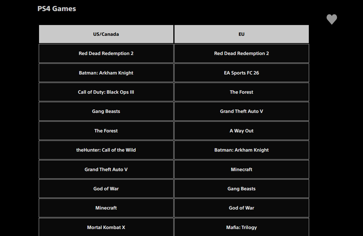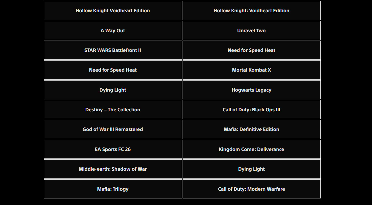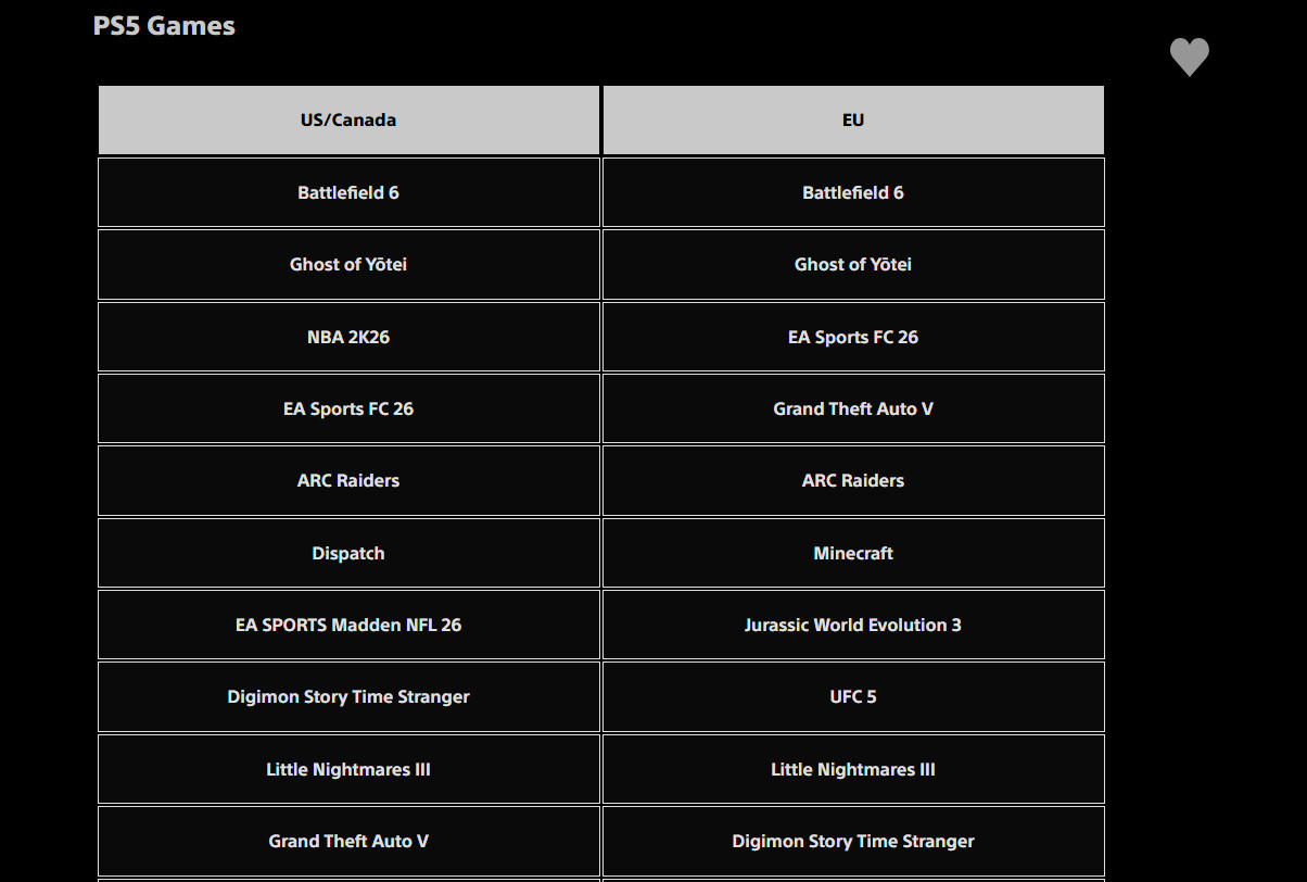 Третье место различается в каждом из регионов, но в обоих случаях это спортивные симуляторы — NBA 2K26 в США и Канаде, а также EA Sports FC 26 в Европе. Владельцы PlayStation 5 активно играли и в интерактивную комедию Dispatch, которая занимает шестое и 11-е место в зависимости от региона.
