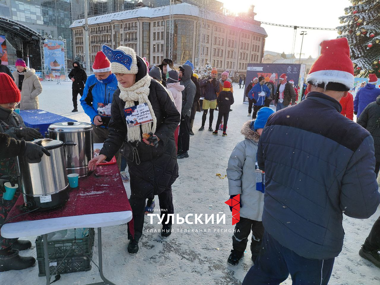 Всего участие в забеге приняли 300 человек. На финише их ждал хоровод и сюрприз от Деда Мороза - горячий чай с пирожками.