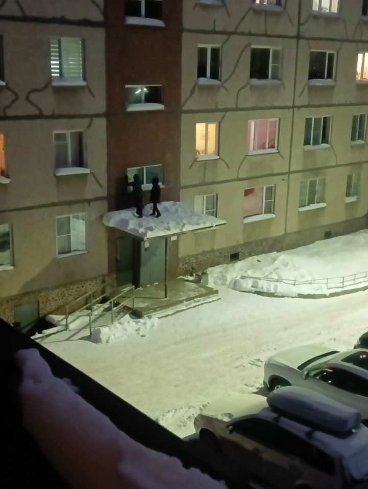 — Вот такая небезопасная «развлекуха» на Кукковке для наших детишек. Во избежание неприятных случаев, снимите оконные ручки в подъездах! Прыгают с козырька подъезда в сугроб!, — написала очевидица в паблике «КУККОВКА.РФ | микрорайон Кукковка».