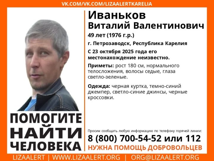 Волонтеры просят помощи в поисках жителя Петрозаводска Виталия Валентиновича Иванькова.