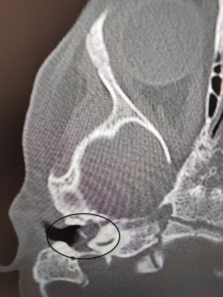 Крошка поступила в оториноларингологическое отделение с хроническим гнойным средним отитом и подозрением на врождённую холестеатому барабанной полости (кистозное патологическое образование в среднем ухе). Это заболевание обычно диагностируют позже: у детей пяти-восьми лет. Холестеатома опасна тем, что может привести к повторяющемуся гноетечению и разрушению структур среднего уха, которые отвечают за слух.