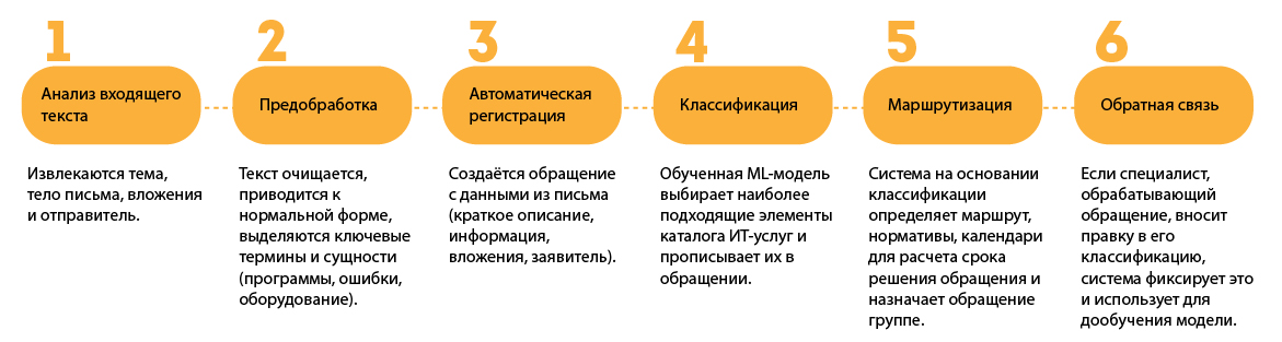 Модуль полностью интегрирован в ITSM-систему и запускается автоматически при поступлении нового письма: