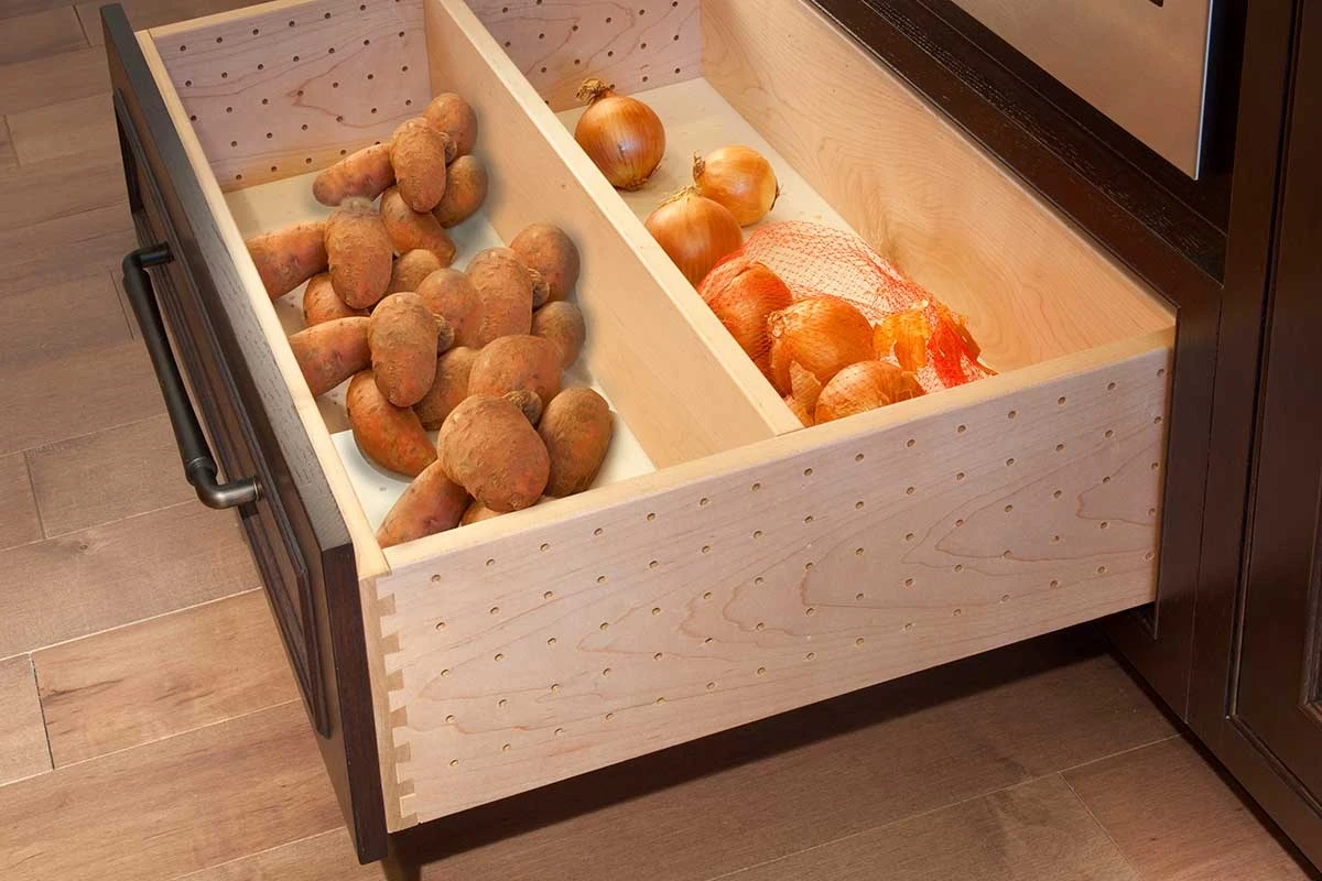 Лучше при +4…+10 °C, 70–75% влажности. Идеально — в сетках или ящиках для вентиляции.