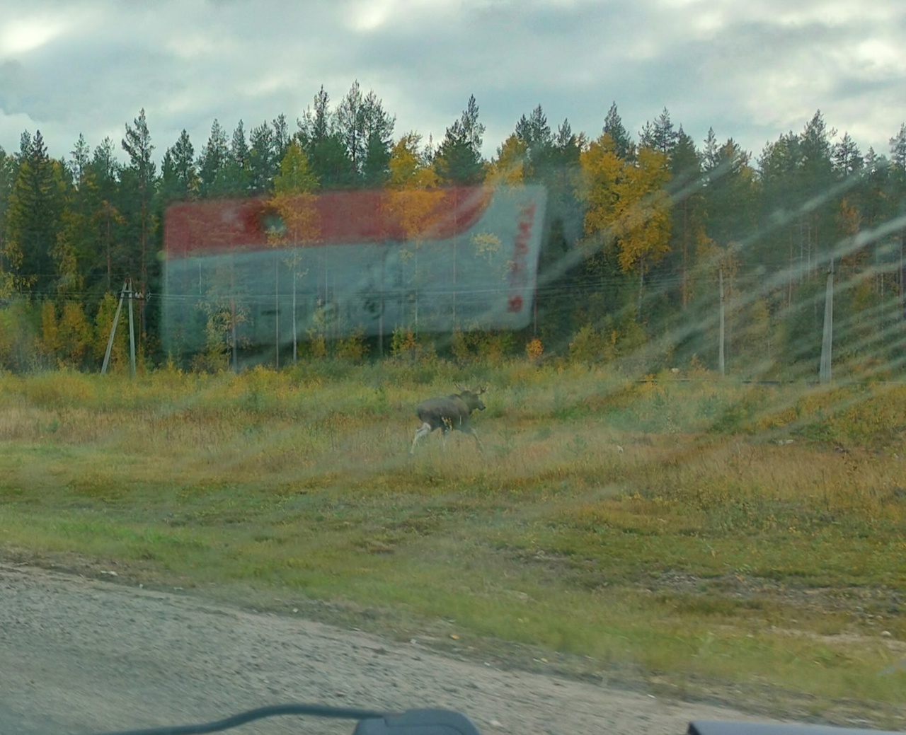 «За машиной пробежал». Лоси бегают у дороги под Петрозаводском