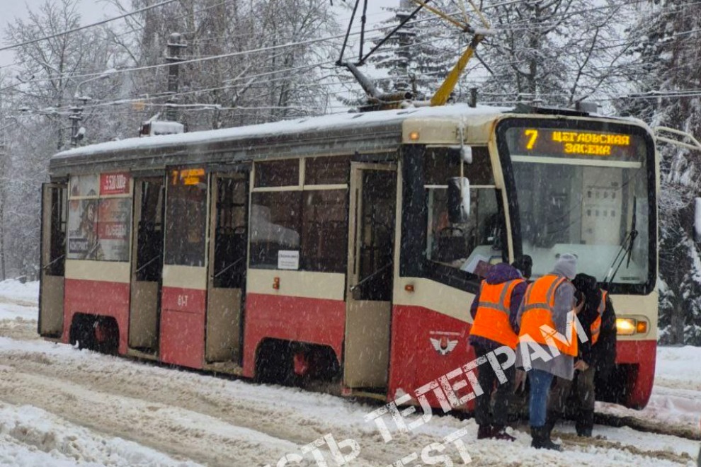 В Туле трамвай сошел с рельсов. Очевидцы публикуют кадры в соцсетях.